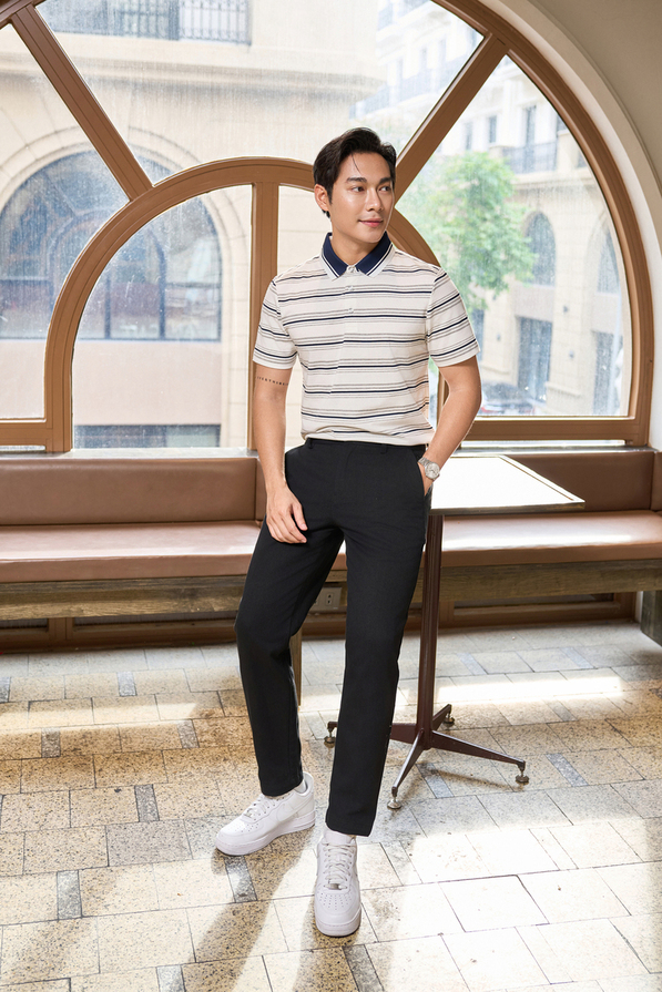 Áo Polo nam ngắn tay kẻ line ngực - 238PLS21022 - 238PLS21022
