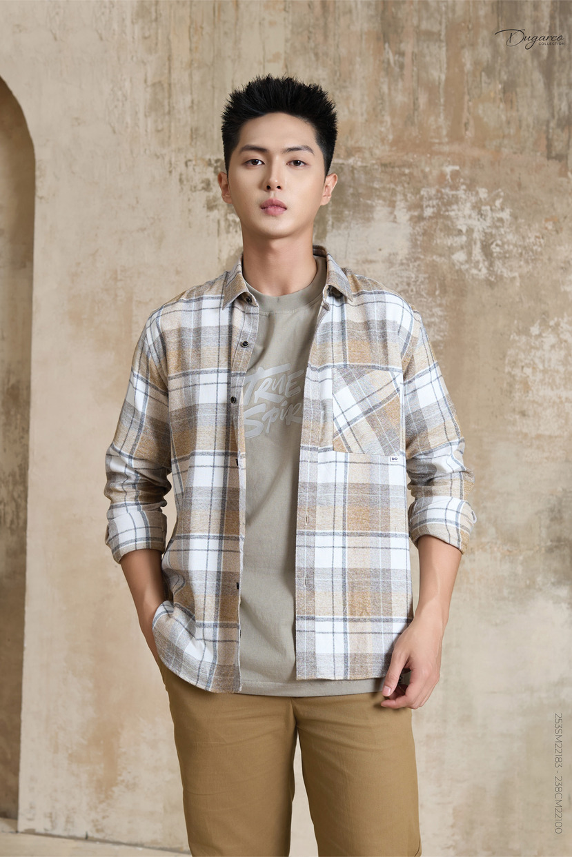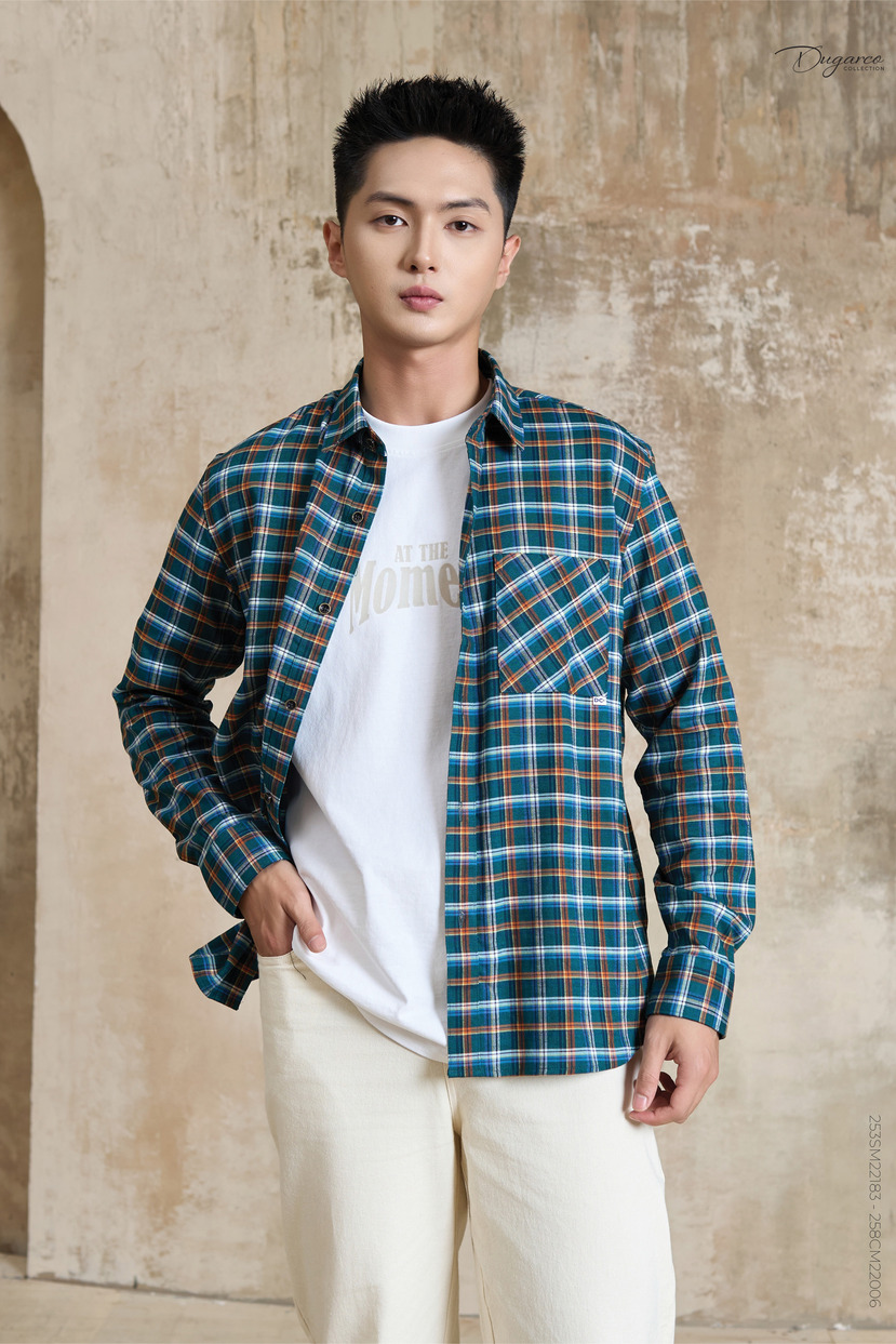 Áo sơ mi nam DT 2 túi ngực-243SM22054-DC25 - 243SM22054