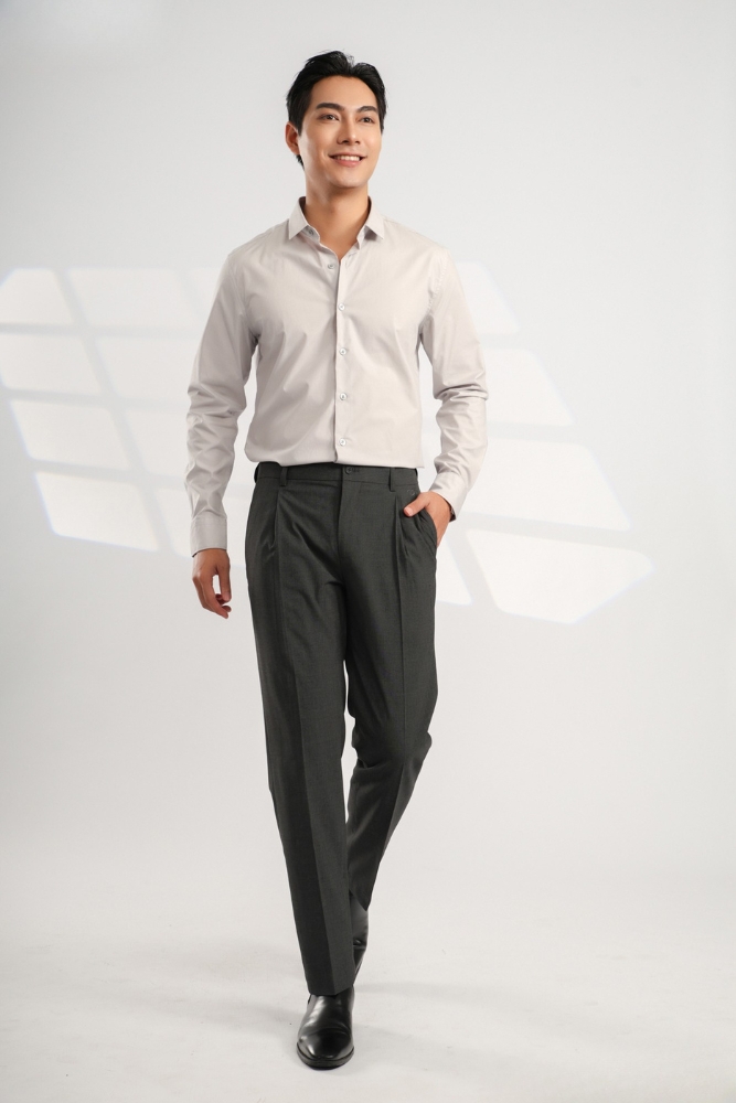 Thiết kế quần với ống quần đứng ôm êm nhẹ, cạp may vừa vặn khéo léo che đi khuyết điểm vùng bụng cùng phom fit tôn lên vóc dáng khoẻ khoắn và nam tính của phái mạnh.